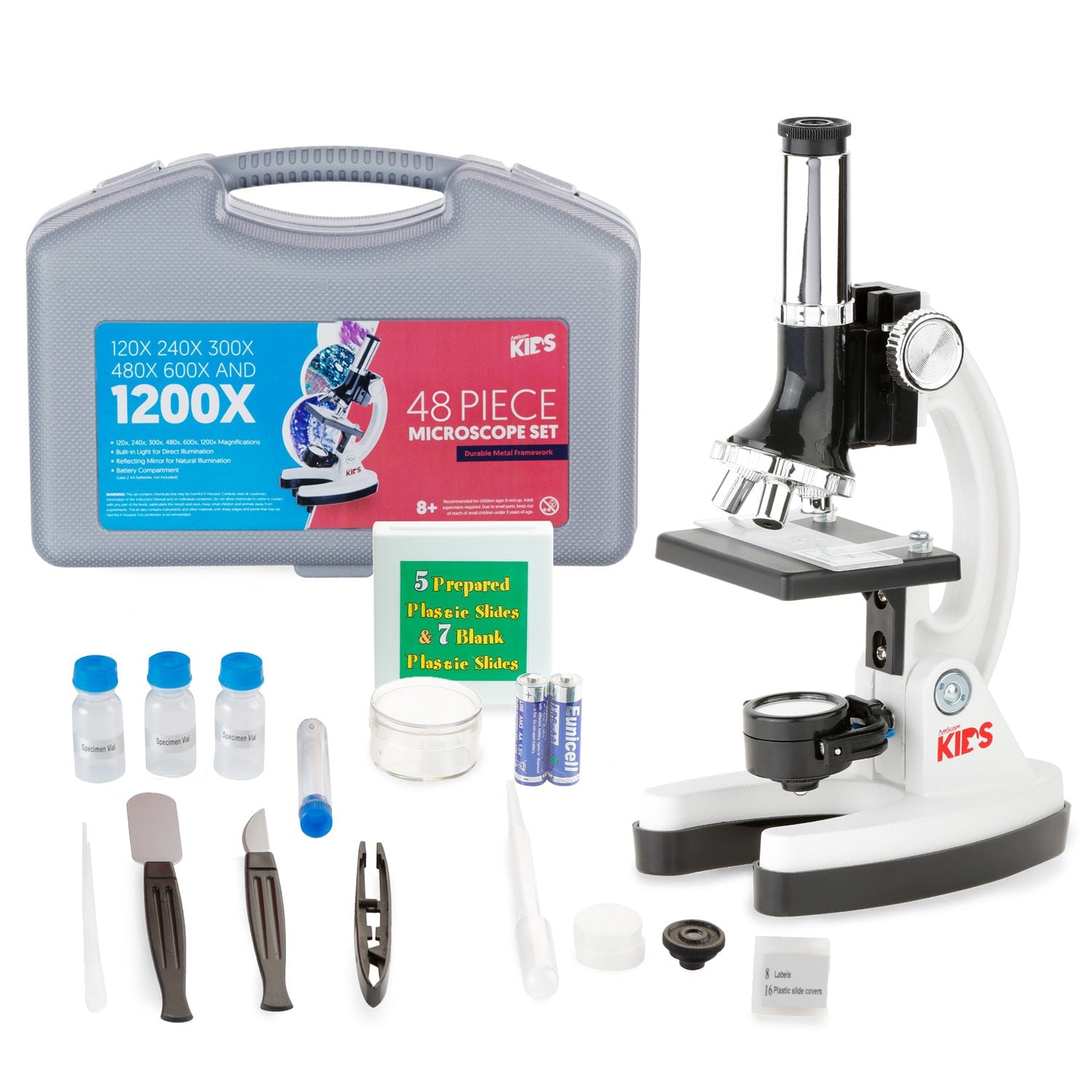 AMSCOPE 1200X 52-PCS KIDS BEGINNER MICROSCOPE KIT WITH SLIDES, LED LIGHT, STORAGE BOX AND BOOK "THE WORLD OF THE MICROSCOPE”