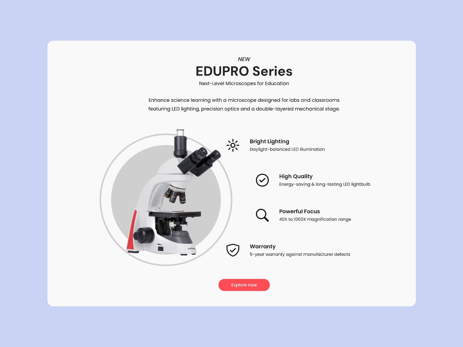 5-year warranty on AmScope microscopes.