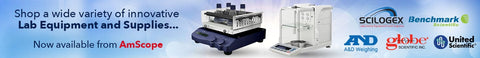 AmScope now offers a wide selection of lab equipment and supplies from many industry-leading manufacturers such as Globe Scientific, Scilogex, A&D Weighing, Benchmark Scientific and United Scientific. From benchtop equipment such as balances, rockers, shakers and pumps to liquid handling products and lab consumables – we have the high-quality products at the right price that you need for your specific applications.
